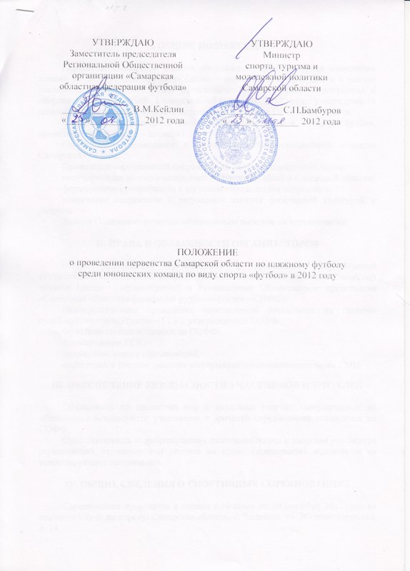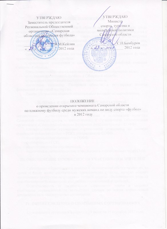 11 – 12 августа 2012 года Министерство спорта Самарской области и Региональная общественная организация «Самарская областная федерация футбола» проводят Открытый чемпионат Самарской области по пляжному футболу среди мужских команд «Золотые пески Самары».