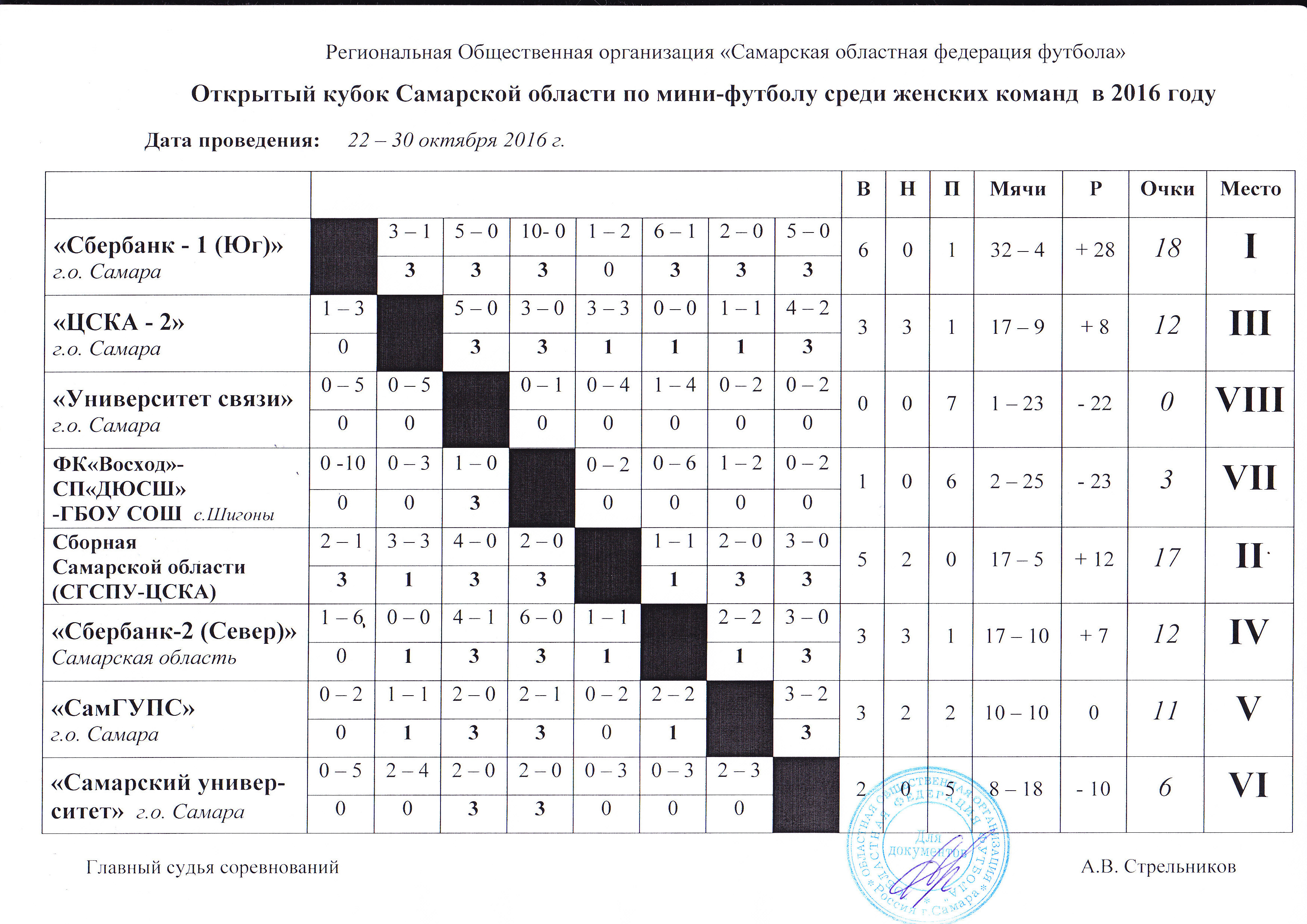 Открытый Кубок Самарской области по мини-футболу среди женских команд (22–30.10.2016 г.)